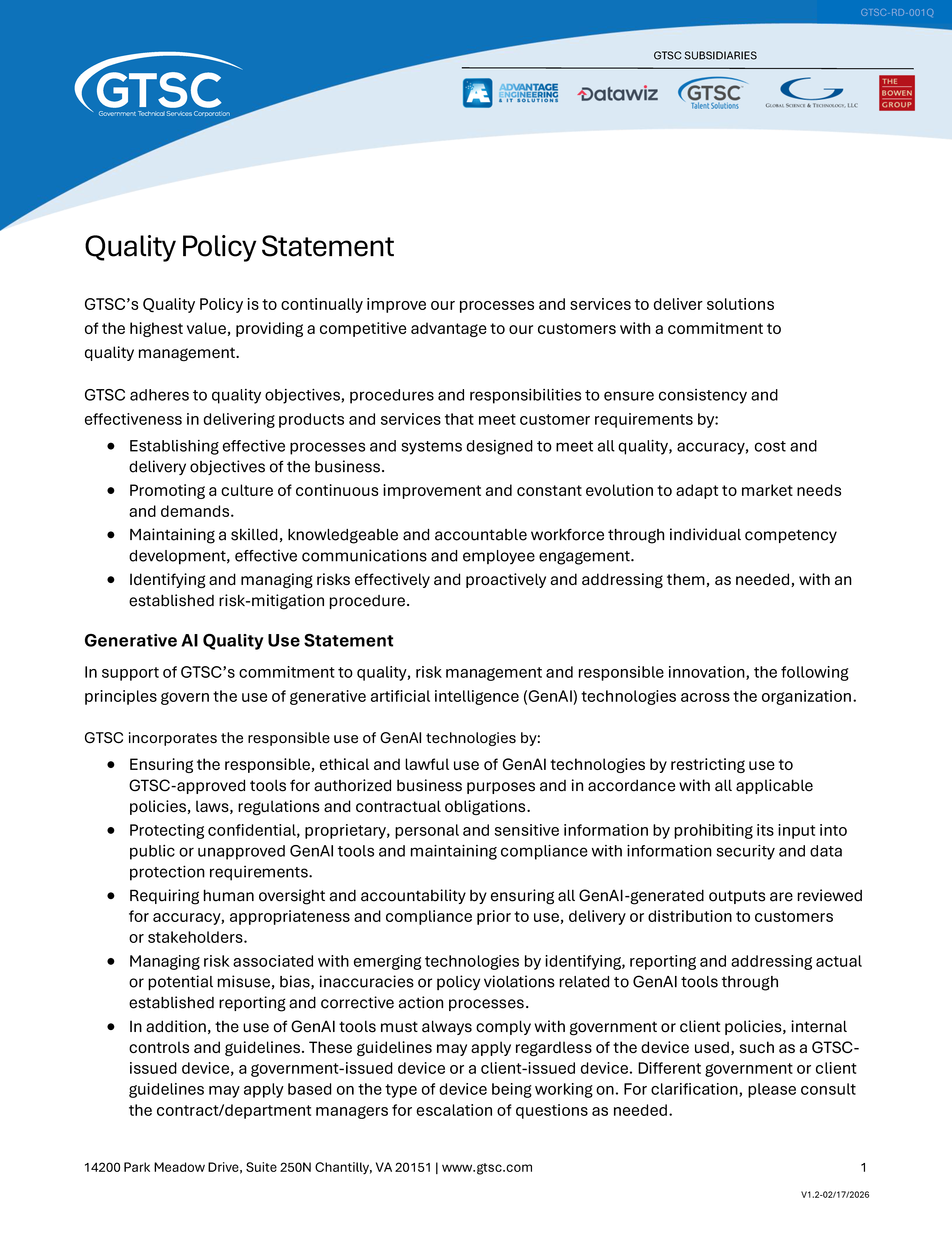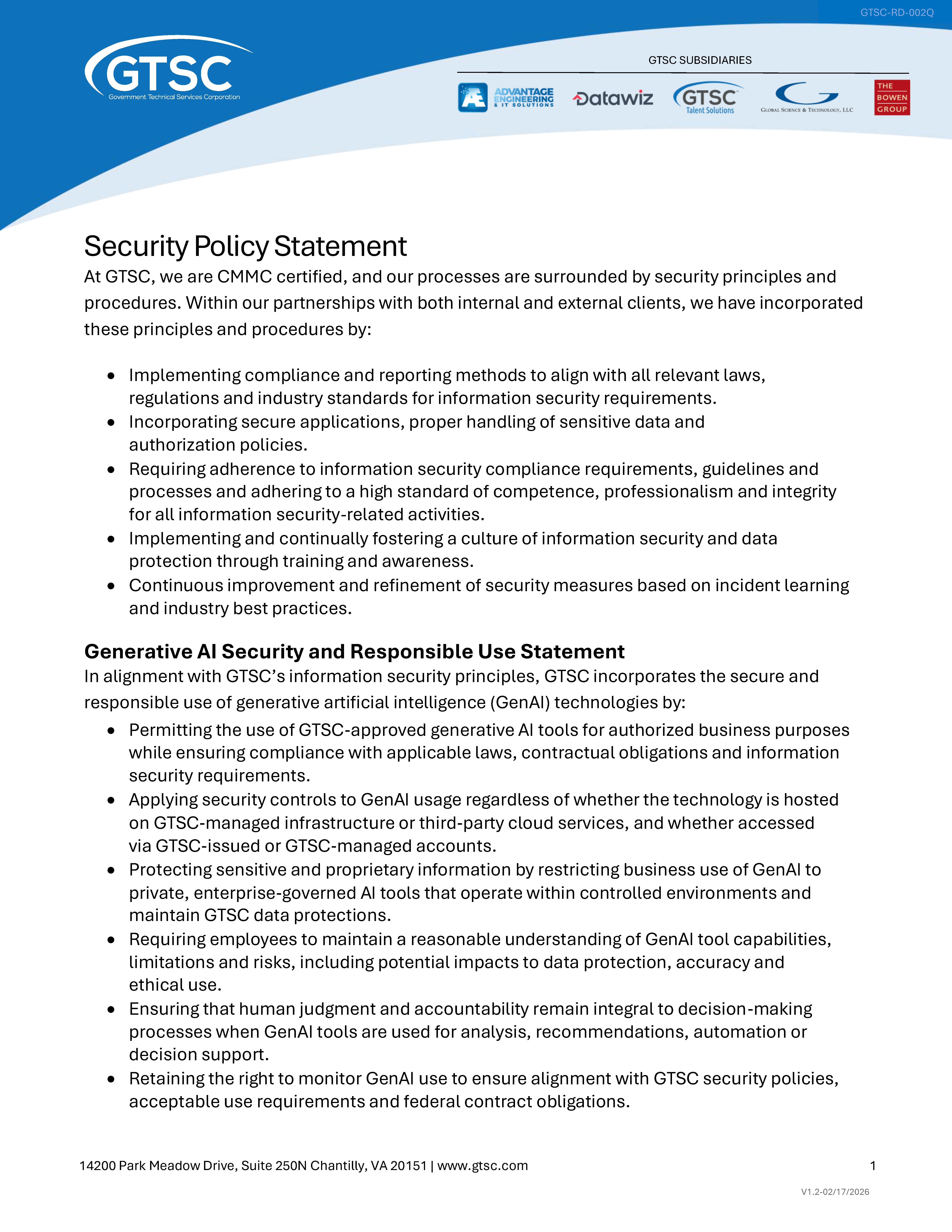 At GTSC™, we are the people we serve. We are a federal contractor staffed with former military or military affiliated, and we understand that our success relies on putting the people we serve front and center in everything we do.